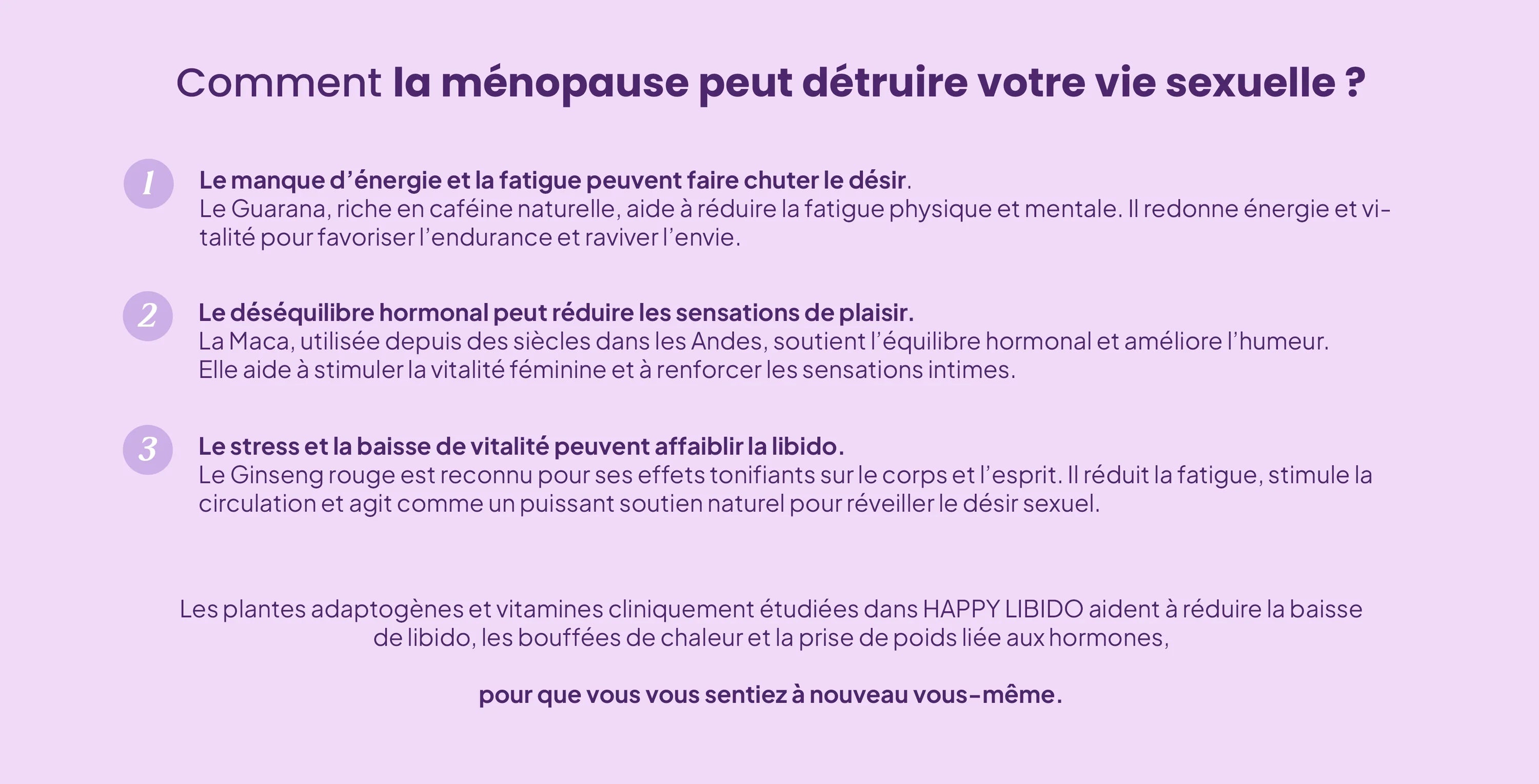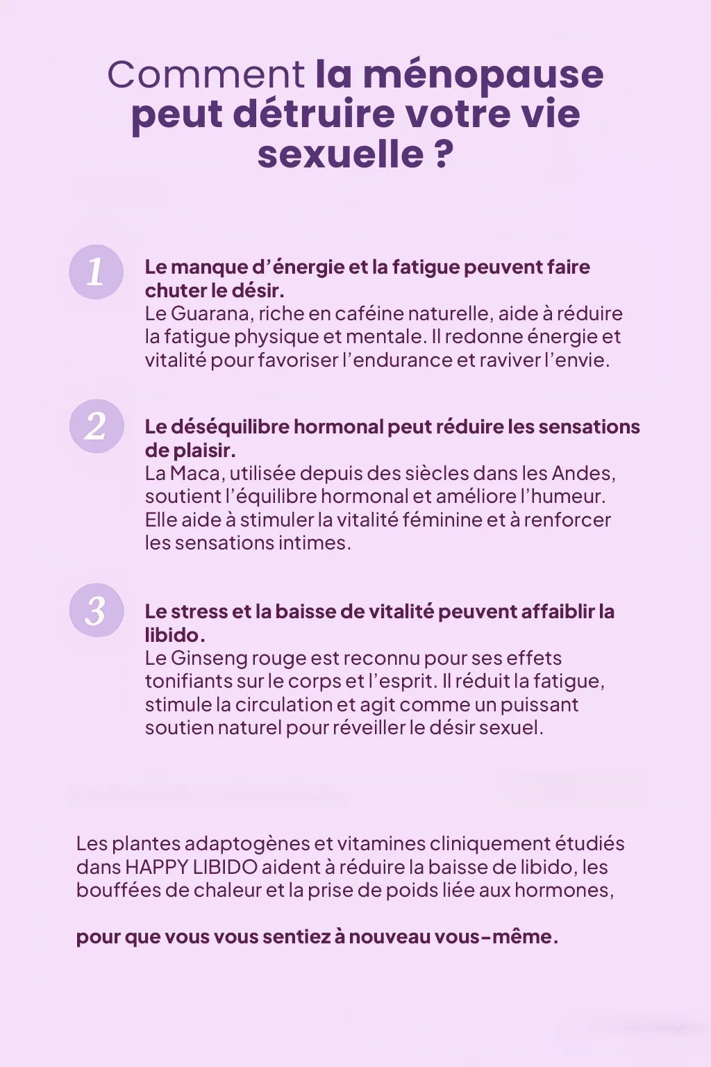 Il booste lâĂ©nergie, combat la fatigue et apporte un soutien naturel pour rĂ©activer le dĂ©sir.